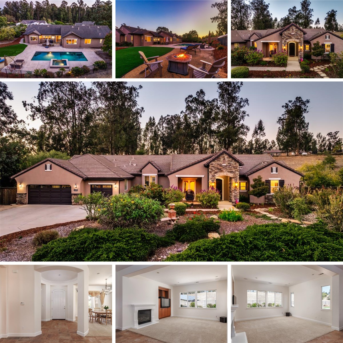 Sprawling single-level home, nestled in a truly serene setting within the coveted Knollwood Estates. Homes rarely come up for sale in this highly desired location! This grand, expansive retreat offers 3,178 square feet of sophisticated living- enhanced for relaxed elegance and effortless entertaining. Inside, luxury flows seamlessly with 10 foot ceilings, a gourmet kitchen featuring granite slab counters, double ovens, a Wolf range, and wine fridge—all overlooking a welcoming Great Room with media center and fireplace. Thoughtful layout with an oversized primary suite on one end to prioritize privacy with his and hers walk-in closets. You'll find two more generous bedrooms on the other wing and four bathrooms total. Plus, Large indoor laundry, bonus office space or second living room. A spacious game room with wet bar, a dedicated home theater package, and abundant natural light enhance the sense of comfort and connection throughout. Some of the best weather on the Coast can be found in Nipomo combined with two central air conditioning units and owned solar power system that keeps utility costs low without compromising luxury. Step into the backyard oasis with a spectacular recently upgraded in-ground Pebble-Tec pool, enhanced with a cascading waterfall and spa. Surrounded by drought-tolerant landscaping, raised garden beds, lemon, apple and avocado trees. The outdoor space invites both celebration and tranquility. Complete with fresh exterior paint, and a three car garage! Embrace the exclusivity of owning more than an acre while enjoying easy access to the highway, close proximity to three beautiful golf courses, world class wineries and coastal dining.