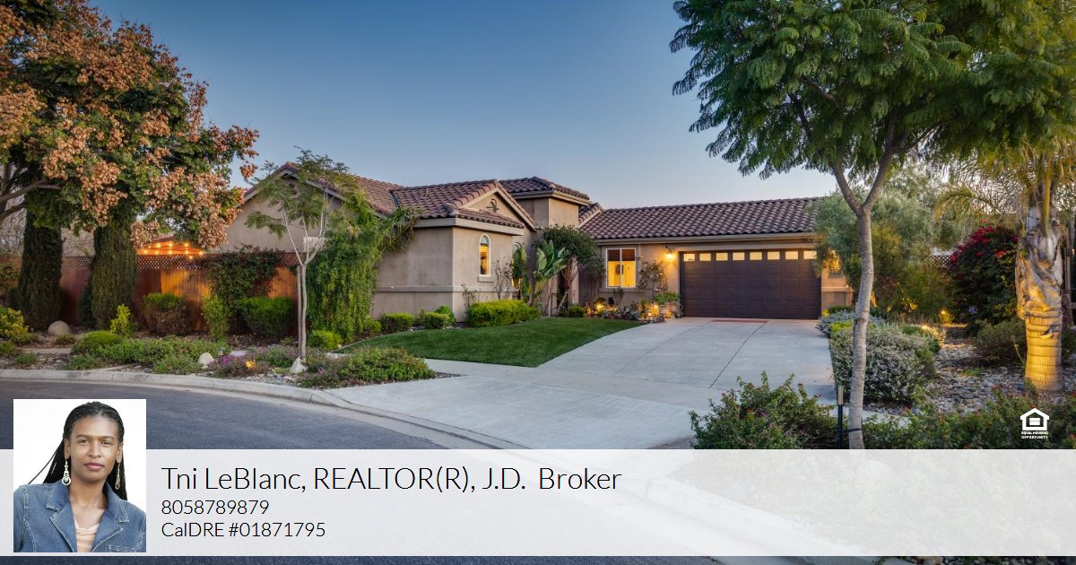 First time on the resale market, this is the largest fully landscaped lot (12632 SF) in this premier development that has no HOA fees! Your own private garden awaits in Legacy at La Ventana located in Northeast Santa Maria; a serene setting to enjoy that morning cup of tea with an elegant fountain with a river feature, pond and two water falls, firepit with seating, and a putting green. Low maintenance ground cover, palm trees that decorate the space with a beautiful backdrop, a winding paver lined walkway, and an arbor draped with lighting. This property is a one story residence with smooth surface flooring throughout and featuring 4 bedrooms, 3.5 baths, and 1957 SF of well planned interior space. There are two primary suites with attached private bathrooms; the main owner’s suite features access and views of the backyard, a walk-in closet, separate shower and tub, dual sink vanity and enclosed water closet. The kitchen features dark cabinetry, quartz countertops, stainless appliances, gas cooktop, and a breakfast bar island for gatherings. The living space is an open floor plan with informal and formal dining spaces that spill out into the outdoor oasis of the back patio and garden. $30,000 owned solar system included in sale. Well over $100,000 of improvements and exterior enhancements. Refrigerator, washer and dryer are negotiable. Great location close to Marian Medical Center & Pioneer Valley High School and a 25 minute drive to the Five Cities beach area. Come live your central coast dream today! Information deemed reliable but not verified or guaranteed by the broker.