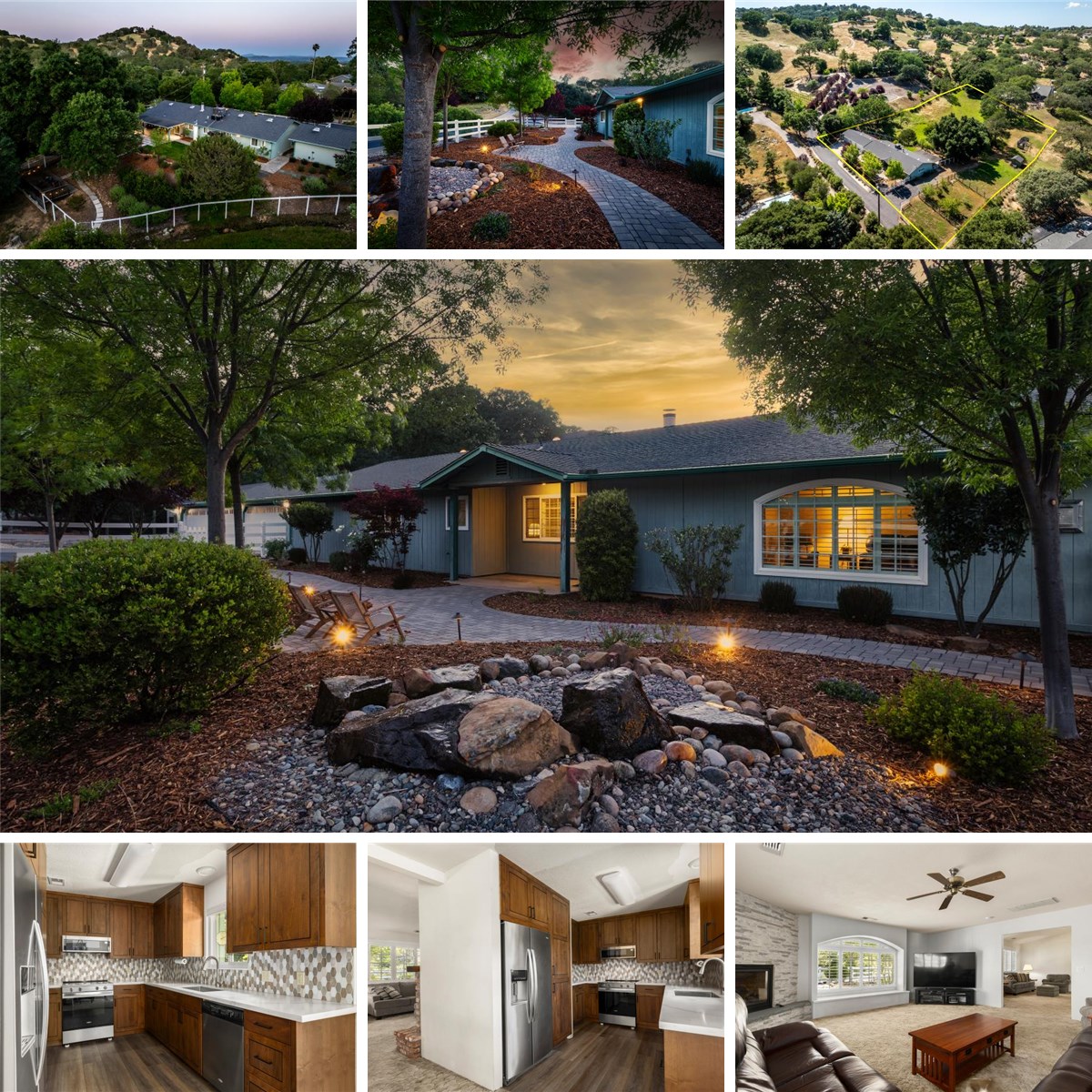 Peaceful and private, yet just minutes from downtown Atascadero, this beautifully updated ranch-style home offers the perfect blend of convenience and country living. Situated on 1.6 acres, this spacious 2,357 sq. ft. residence features 4 bedrooms and 2 bathrooms, including a primary en-suite and a secondary bedroom with its own attached full bath—ideal for guests or multi-generational living. The home boasts a recently updated kitchen and bathrooms, an extra-large mud/laundry room with utility sink, and multiple inviting living spaces, including a large family room with a gas fireplace insert with smart electronic control and an additional living area with a wood-burning fireplace. Expansive energy efficient Milgard picture windows throughout with plantation shutters that showcase serene views of mature landscaping and oak-studded hills. Step outside to enjoy fully fenced front and back yards, a covered patio with drop-down sun shades off the kitchen/dining area, and an additional deck overlooking a seasonal creek that runs through the property. Garden enthusiasts will appreciate the separate deer-fenced garden area, raised beds, and established fruit trees including apricot, pear, plum, and apple, along with thriving pomegranate and artichoke plants. Car lovers and hobbyists will be thrilled with the oversized 5-car garage and ample additional parking. The property is equestrian-friendly and well-suited for 4H animals or pets. A Tuff Shed is also included. Accessed via a shared paved road with only two neighbors and no HOA, this flag lot offers both privacy and accessibility. Recent improvements include Section 1 clearance, septic certification, and completion of seller-corrected inspection items. An exceptional opportunity for a family home or multi-generational living in a peaceful, scenic setting.