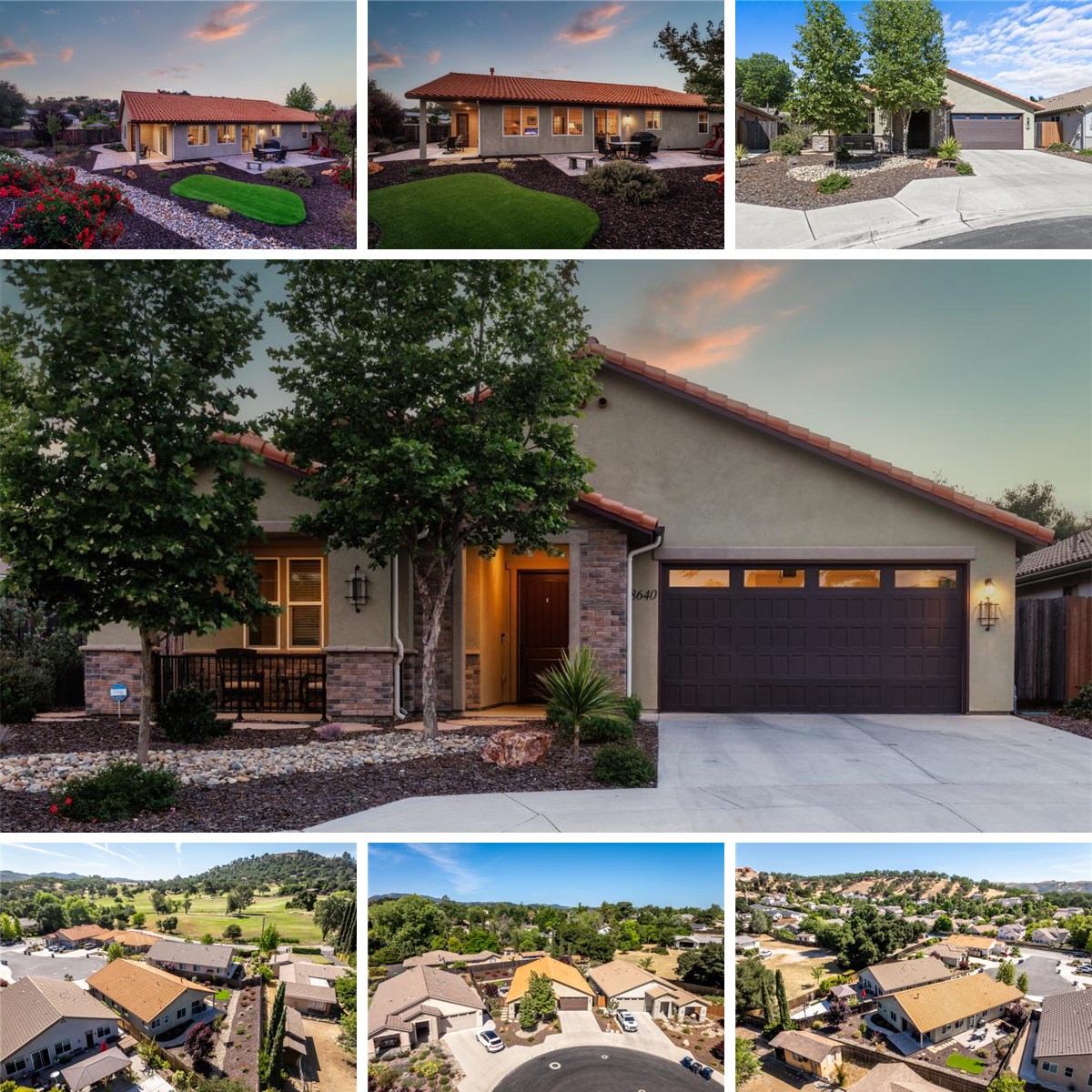 Welcome to 8640 Erika Crt. Located in Bella Casa one of the most desirable communities in Atascadero, just a short distance to Chalk Mt Golf Course. One of seven homes built in 2018 on a large 9,144 sqft cul-de-sac lot. This single level 2,140 sqft home is one of the biggest in Bella Casa offering 4 bedrooms, 3 full baths, indoor laundry room and an oversized 2 car garage. All homes in Bella Casa are well maintained Spanish style with tile roofing, stucco exterior and concrete driveways. Off the entry to the home there’s a covered porch where one can relax and enjoy the neighborhood. When entering the home, the open floor plan includes a great room with vaulted ceilings and two primary suites. The main primary suite has a large walk-in closet, custom bathroom with tiled shower, soaking tub and dual sinks complimented with granite counter tops. The second primary suite is located off the entry perfect for extended family or guests. The kitchen is well designed with a large island, granite counters, abundance of cabinets, walk-in pantry and double sink overlooking the professionally landscaped back yard. The back yard is an entertainer’s delight offering a nice space right off the kitchen with custom hardscape pavers perfect for bar-b-que and outdoor dining. Practice your putting on the turf lawn or enjoy the covered patio located off the living room and primary suite all accessed by a custom walkway. This well-maintained home is perfect for anyone looking for comfortable living, private cul-de-sac location, low maintenance and convenience to everything Atascadero has to offer. Listed at $899,000